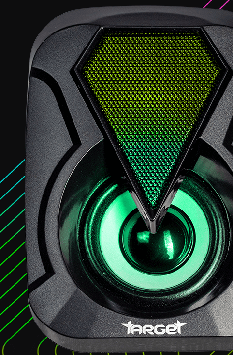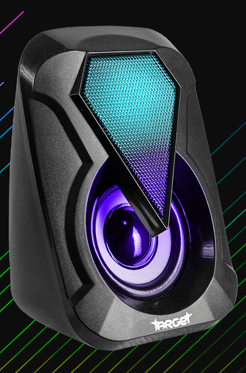 Com ângulos marcantes e linhas que combinam completamente com o mundo gamer, essa caixa de som entrega um design diferenciado juntamente com iluminação Rainbow que certamente se encaixará com o seu setup trazendo um visual bonito e moderno!
