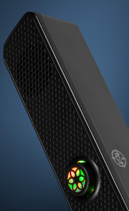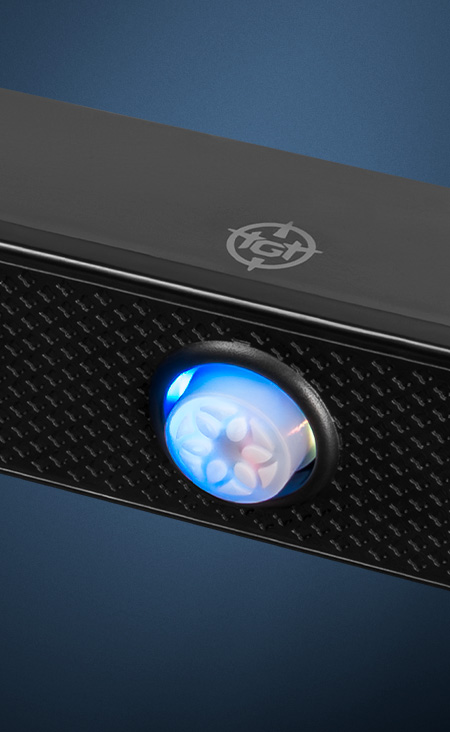 Com acabamento texturizado e uma iluminação central Rainbow vibrante, a Voltrix Lite traz uma estética futurista e agressiva, perfeita para setups que priorizam personalidade. Seu formato compacto em barra (310 x 55 x 66mm) garante presença visual sem ocupar espaço excessivo na mesa!