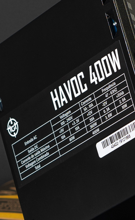A Fonte TGT Havoc tem formato ATX e é indicada para computadores de escritório, home office ou setups de entrada, pra quem está iniciando no universo gamer e precisa de uma fonte confiável. Ela gera menos desperdício de energia, evita excesso de aquecimento, levando assim a um baixo ruído.