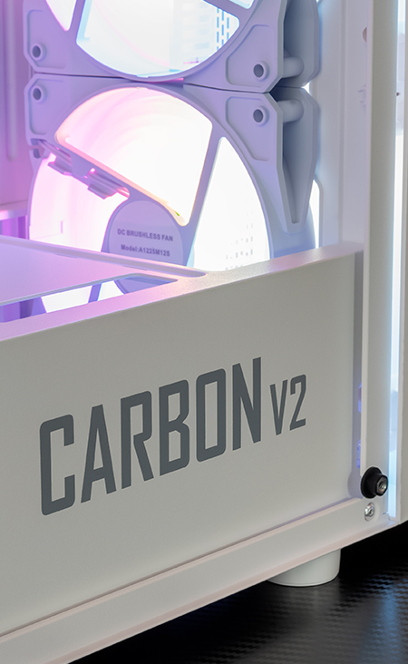 Projetado com materiais de qualidade, Carbon V2 possui o painel frontal feito de plástico ABS e mesh que permite um bom fluxo de ar para seus componentes internos, além disso ele conta com uma estrutura feita em aço SPCC de 0,45mm que será muito durável permitindo que ele te acompanhe por muito tempo e esteja ao seu lado em todas as suas vitórias!