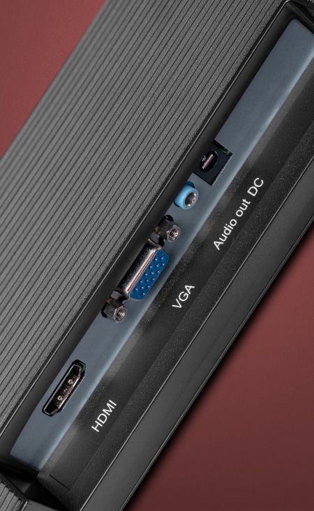 1x VGA 1x HDMI 2.0 1x Saída de áudio 1x DC |