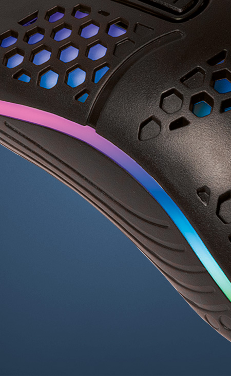 O TGT GM95 é um mouse gamer com um design moderno e uma iluminação interna hipnotizante. Ele possui um corpo perfurado em padrão hexagonal, permitindo melhor ventilação para as mãos durante longas sessões de jogo, além de possui uma estrutura leve para você ter mais agilidade em suas gameplays!