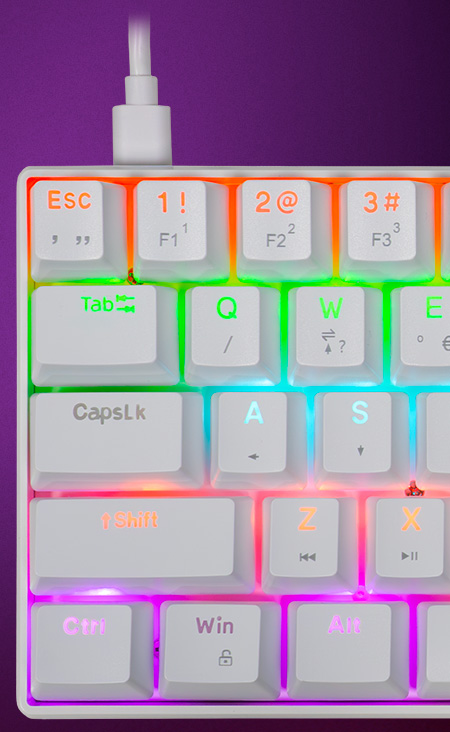 Teclado Mecanico TGT Sherman Compacto V2, Rainbow, ABNT2, Switch Huano Azul, Branco