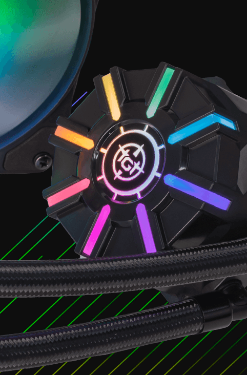 Trazendo um visual luminoso em Rainbow, compondo uma iluminação sem igual para o seu setup. As ventoinhas são iluminadas assim como a bomba, trazendo mais estilo para suas gameplays.